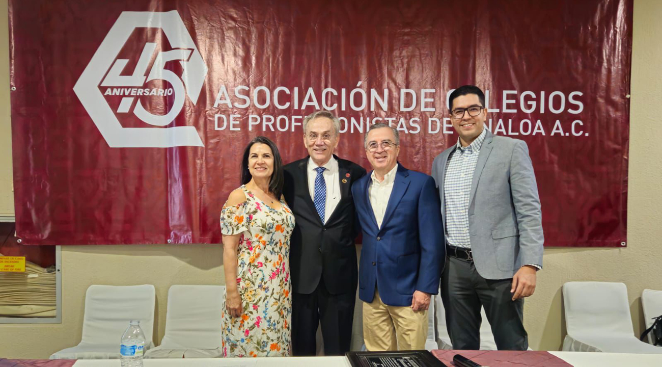 El día 12 de abril de 2024, el Vicepresidente de la Mesa Directiva de nuestro Colegio, Lic. Masao Roberto Sandoval Valle, acudió en representación del Presidente Mtro. Álvaro Martín Acosta Sánchez, al 45 Aniversario de la constitución de la Asociación de Colegios de Profesionistas de Sinaloa, A.C. y en dicho evento le fue entregado un reconocimiento a nuestra agrupación como socio fundador, pilar y orgullo de la expresada Asociación.