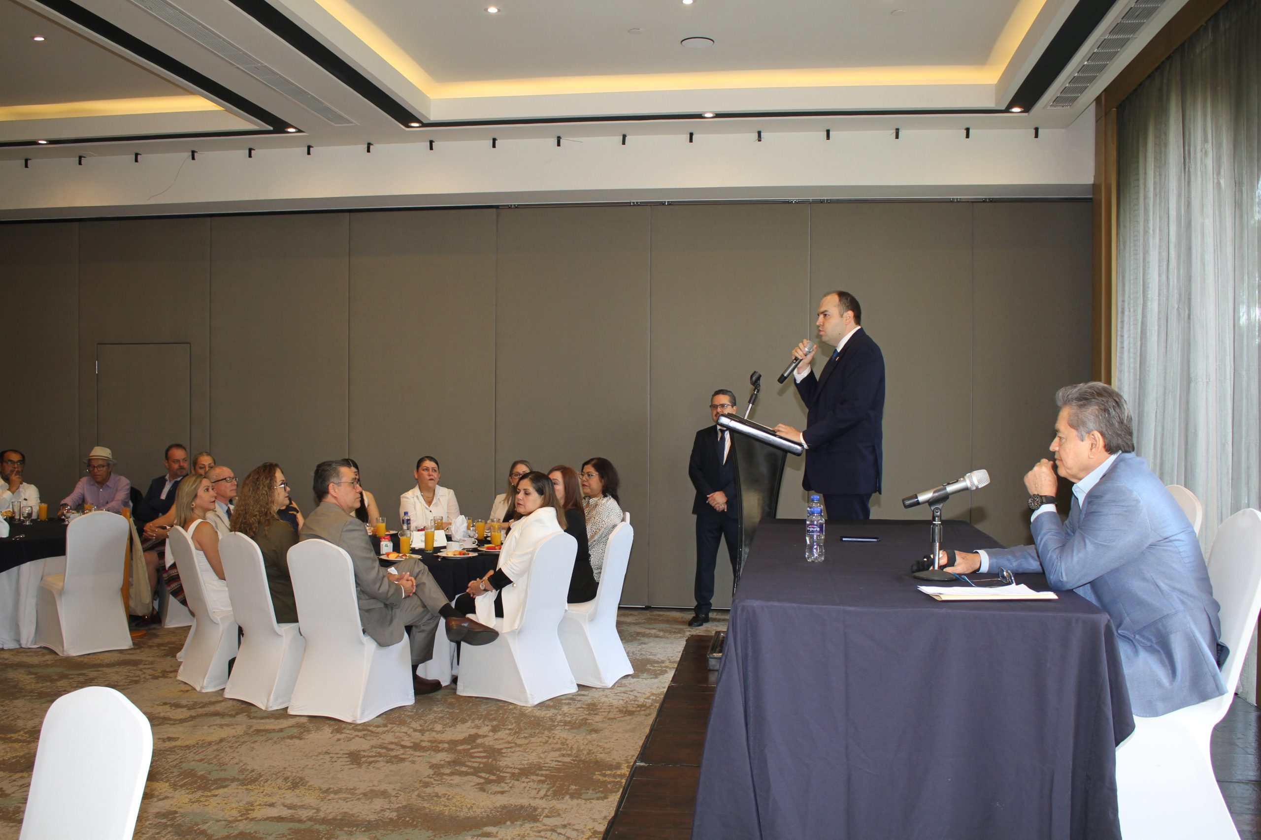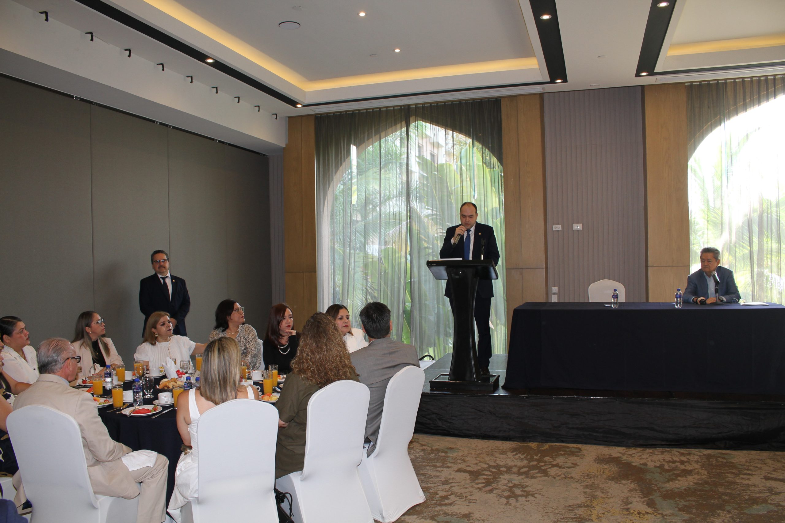 En el lugar, el presidente Mtro. Álvaro Martín Acosta Sánchez, agradeció la presencia de las y los asociados, dirigió un breve mensaje alusivo a la fecha e invitó a los presentes a trasladarse al desayuno conmemorativo en el Hotel Lucerna.