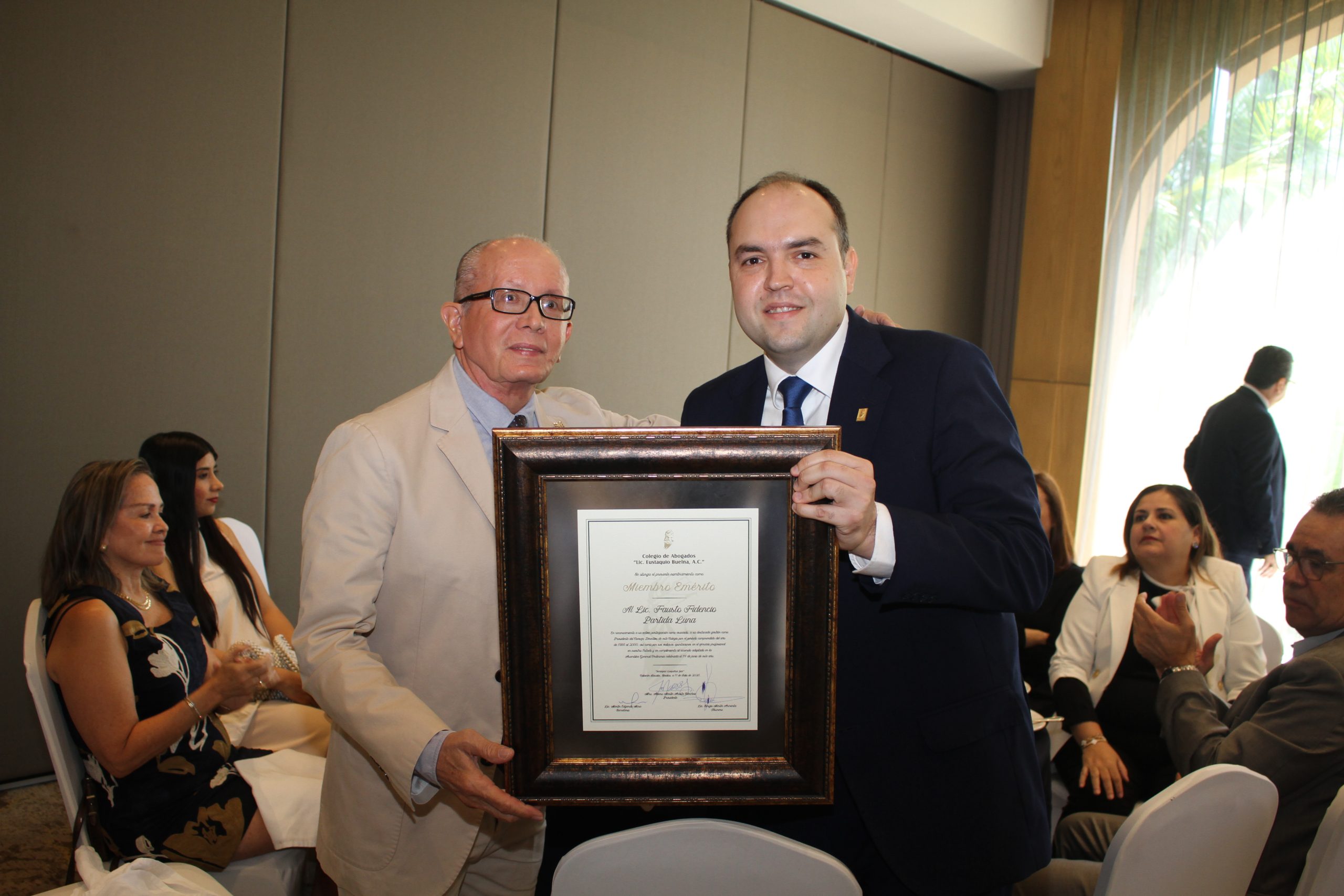 Para cerrar con broche de oro, se entregó al Lic. Fausto Fidencio Partida Luna su merecido reconocimiento como miembro emérito del Colegio.